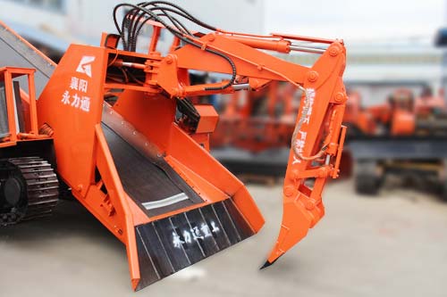 一、本機(jī)靠履帶推進(jìn)扒取巖石送入自身的刮板輸送機(jī),輸送機(jī)從尾部將巖石卸入自卸汽車或梭式礦車。同時(shí)可利用反鏟挖掘臂扒取遠(yuǎn)處的巖石,也可以用鏟斗來清理工作面。